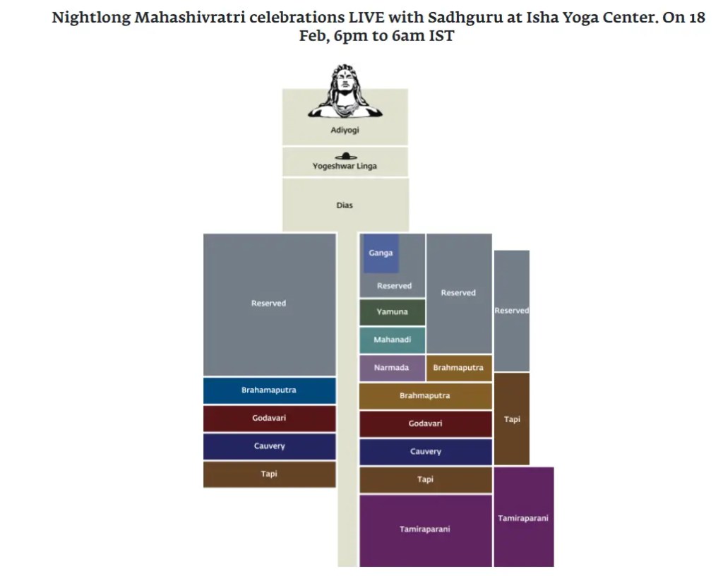 “Close to Sadhguru” Seating: Probably opt for Grace of Yoga program that I highlighted above. It will at least provide you with ashram accommodation and sathsangs with Sadhguru. Apart from that whichever bay you opt for – even the highest paid ones – there is no guarantee it will be close to Sadhguru. In 2022, the entire bay with Sadhguru was cordoned off. We couldn’t even look into it from outside. Even Grace of Yoga participants were seated outside of that bay. So, may Sadhguru’s bay is invite-only now.
