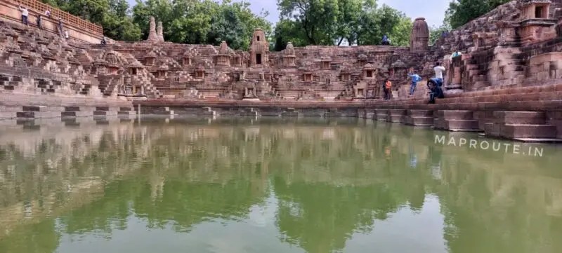 – The river Pushavati which flows nearby, as a bathing / cleansing place. And additionally, the Surya kund which is unmissable right before the Sun temple with its 108 shrines and geometrical stepwell design.